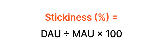 DAU and MAU are among the most important metrics in mobile app marketing analytics. By combining the two, you can determine how effective your current strategy is. The daily active users to monthly active users ratio, or so-called “stickiness,” is used to determine how many of your monthly active users return to your app every day. It’s calculated using the following formula:
